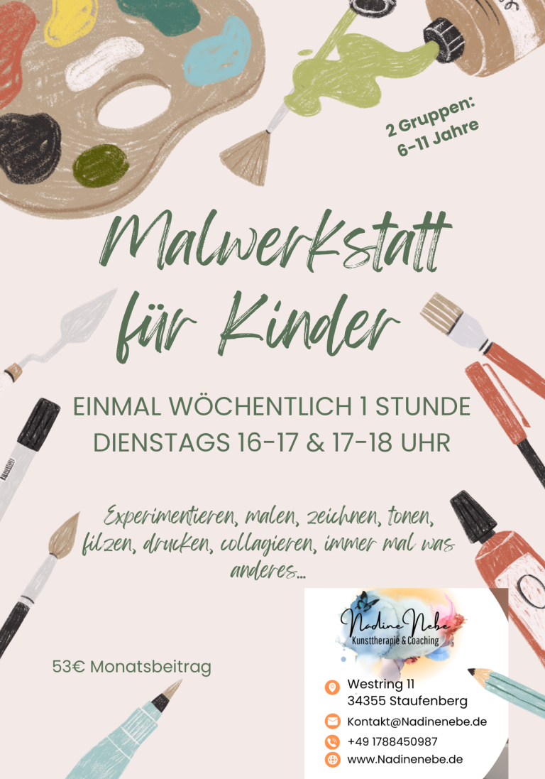Aktuell: jeden Dienstag 1 Stunde -laufender Kurs "Malwerkstatt" für Kinder von 6-11 Jahren